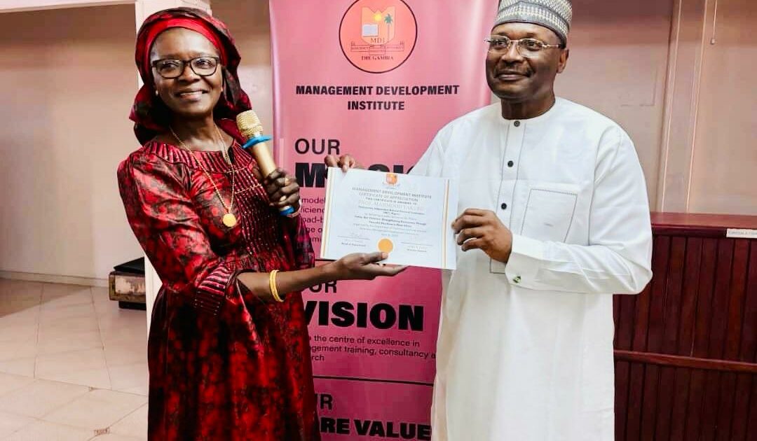 Following the lecture, Yakubu was honoured and presented with a Certificate of Appreciation by the Deputy Director General of the Civil Service University, Banjul, The Gambia, Mrs Fatou Barry.